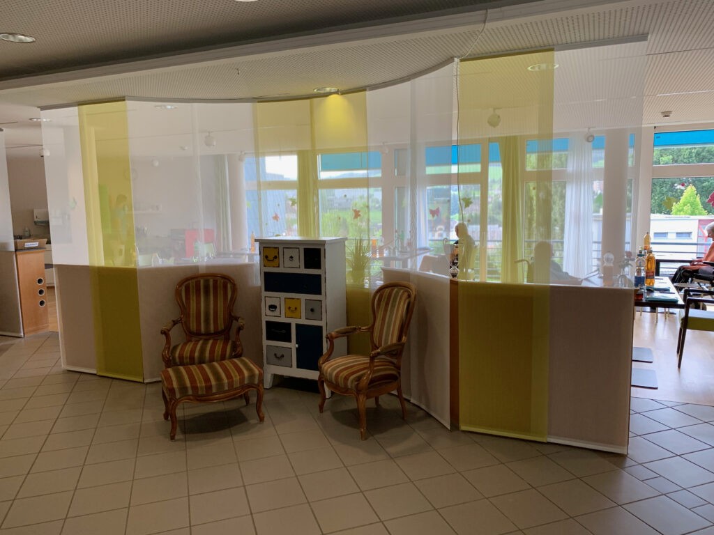 Im Alterswohnheim Waldruh, Willisau konnten wir einen Raumtrenner mit Flächenvorhangpaneelen von MHZ realisieren. Besondere Beachtung verdient der mittlere Teil. Dieser besteht aus einer gebogenen Schiene und den dazugehörigen, ebenfalls gebogenen Flächenvorhangpaneelen. Wir danken dem Alterswohnheim Waldruh für den aussergewöhnlichen und schönen Auftrag. Mehr Infos zu unserem Angebot im Vorhangbereich gibt hier, auf vorhang-fachmann.ch.