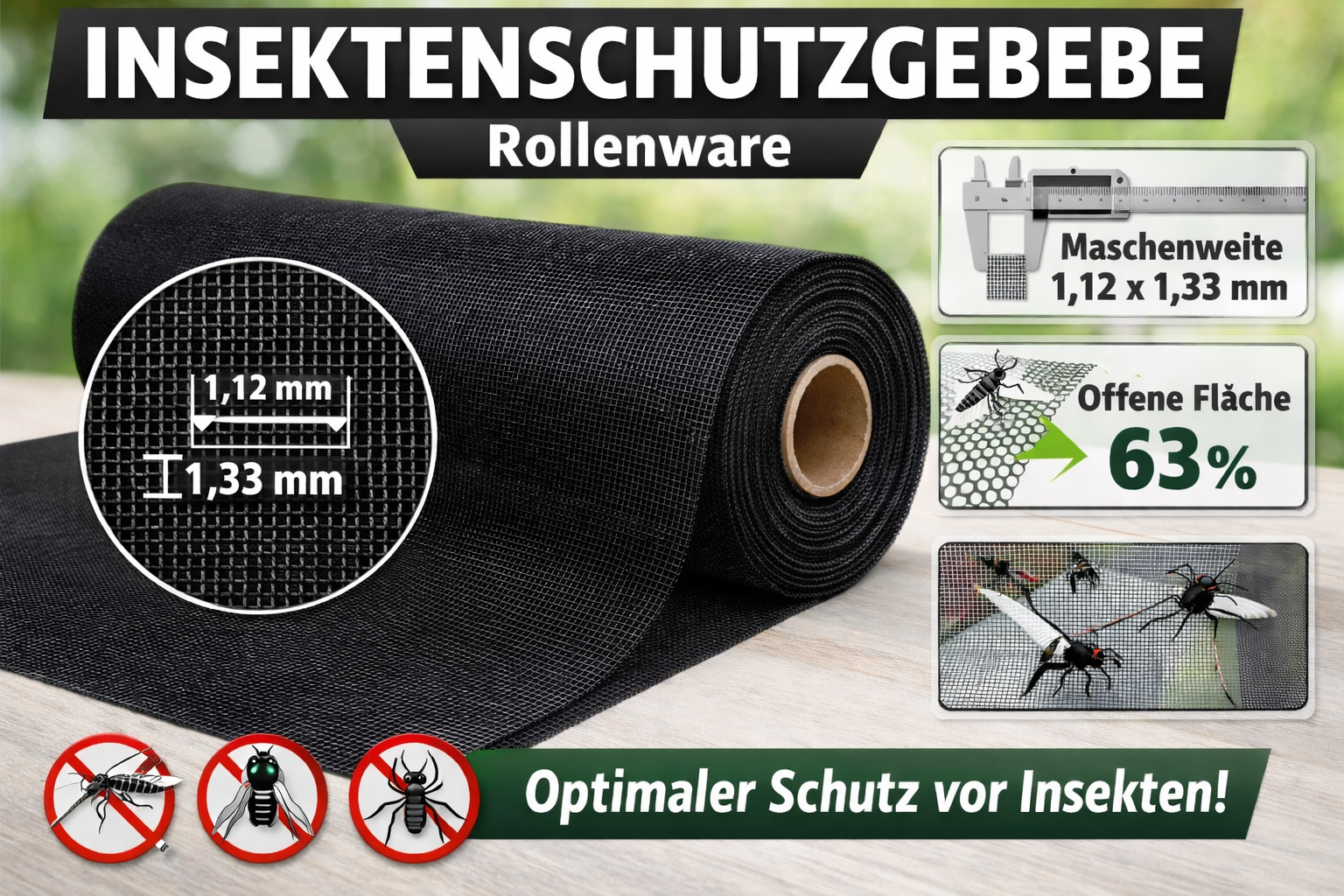 Sehr stabiles, starkes Fiberglasgewebe mit Kunststoffummantelung. Durch die UV-Stabilisierung erhält das Gewebe eine extra lange Haltbarkeit. Das Standardgewebe von vielen Insektenschutzsystemen. Fiberglasgewebe Rollenware für alle gängigen Insektenschutzsysteme geeignet. Ideal als ersatz von bestehenden Gewebe zum neu bespannen von Insektenschutzspannrahmen, Schieberahmen, Drehtüren oder Pendeltüren.
